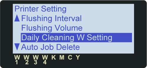 Select [Menu] > [Printer Setting] > [Daily Cleaning W Setting] and press OK button.