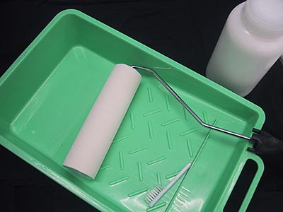 Keep the roller wet in pretreatment and put it on a flat place. Do not dry the pretreatment. If there are some dents on the surface then you cannot apply pretreatment evenly. |